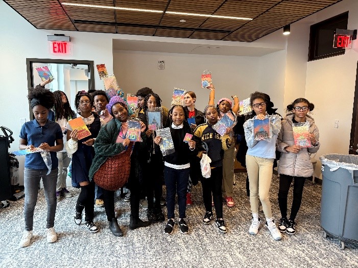 Designed and led an art workshop whereby students created artwork inspired by their visit to two of Detroit’s most iconic architectural landmarks, the restored Michigan Central Train Station and NewLab, a restored Albert Kahn-designed book depository.